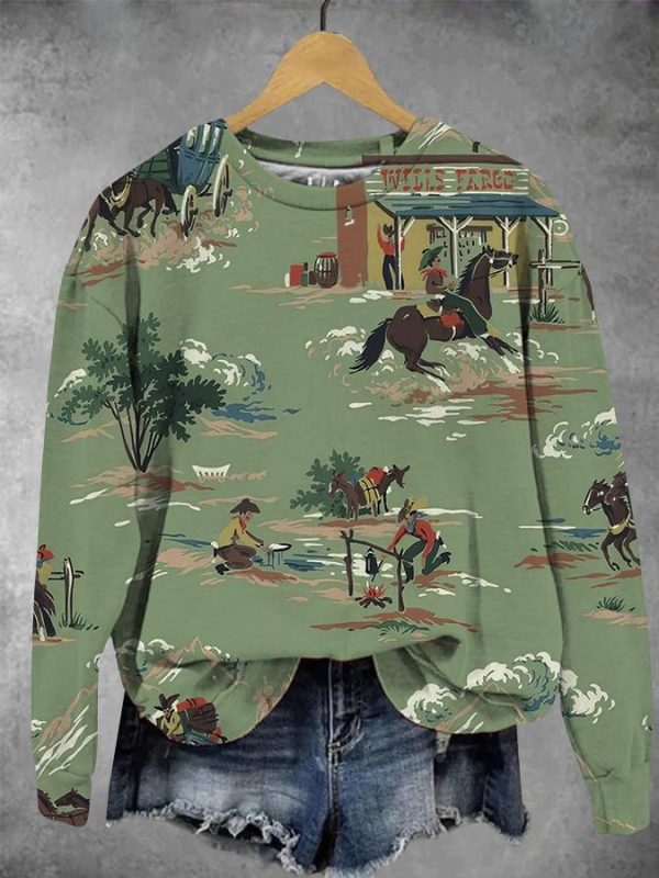 Vintage Western Cowboy Print Sweatshirt
