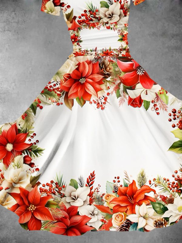 / Women’s Christmas Flower Decoration Christmas Design Maxi Dress